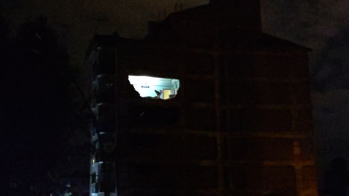 Bunun ardında olayı öğrenip, apartmanın en üst katındaki dairesine gelen Ersin Aslan evinin içine düşen tuğlaları temizledi.