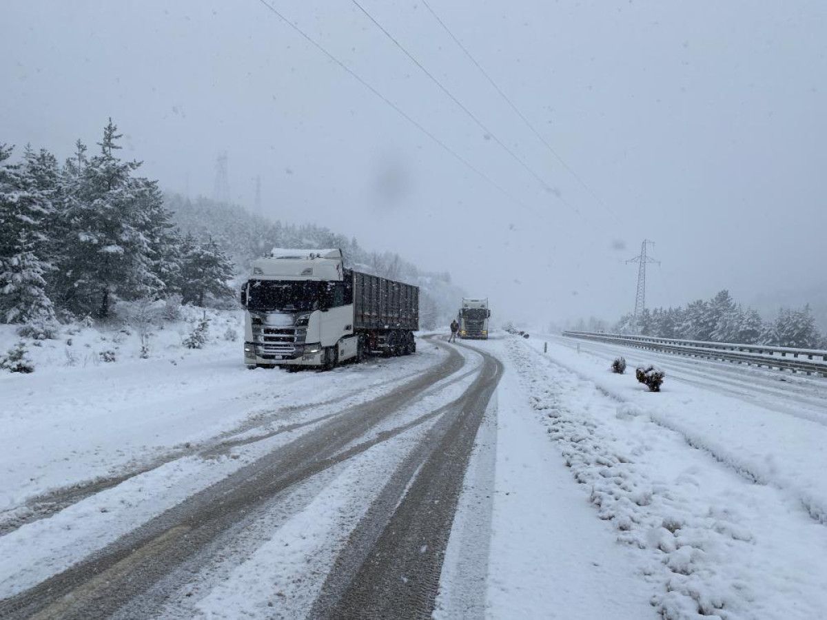Kar yağışının etkisini her geçen dakika artmasının ardından, Kastamonu-Ankara karayolunda seyir halinde olan çok sayıda ağır tonajlı araç ilerlemekte zorluk geçti.