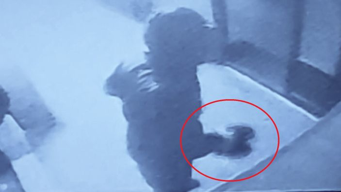 Görüntülerde bir şahsın mescide girerek ayakkabılıktaki ayakkabılara yöneldiği görülüyor. Şahıs daha sonra ayakkabı ve şemsiyeleri alarak mescitten ayrılıyor.