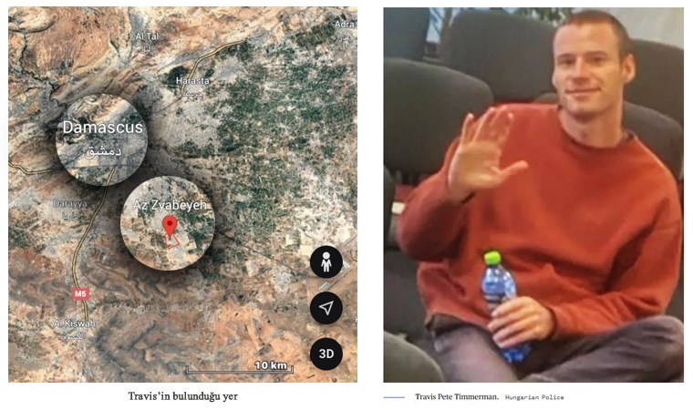 Sosyal medyada dolaşan videoda Travis, sabahın erken saatlerinde Şam yakınlarındaki Dhiyabia kasabasında, yerel unsurlar tarafından bulunduğunu söyledi.
