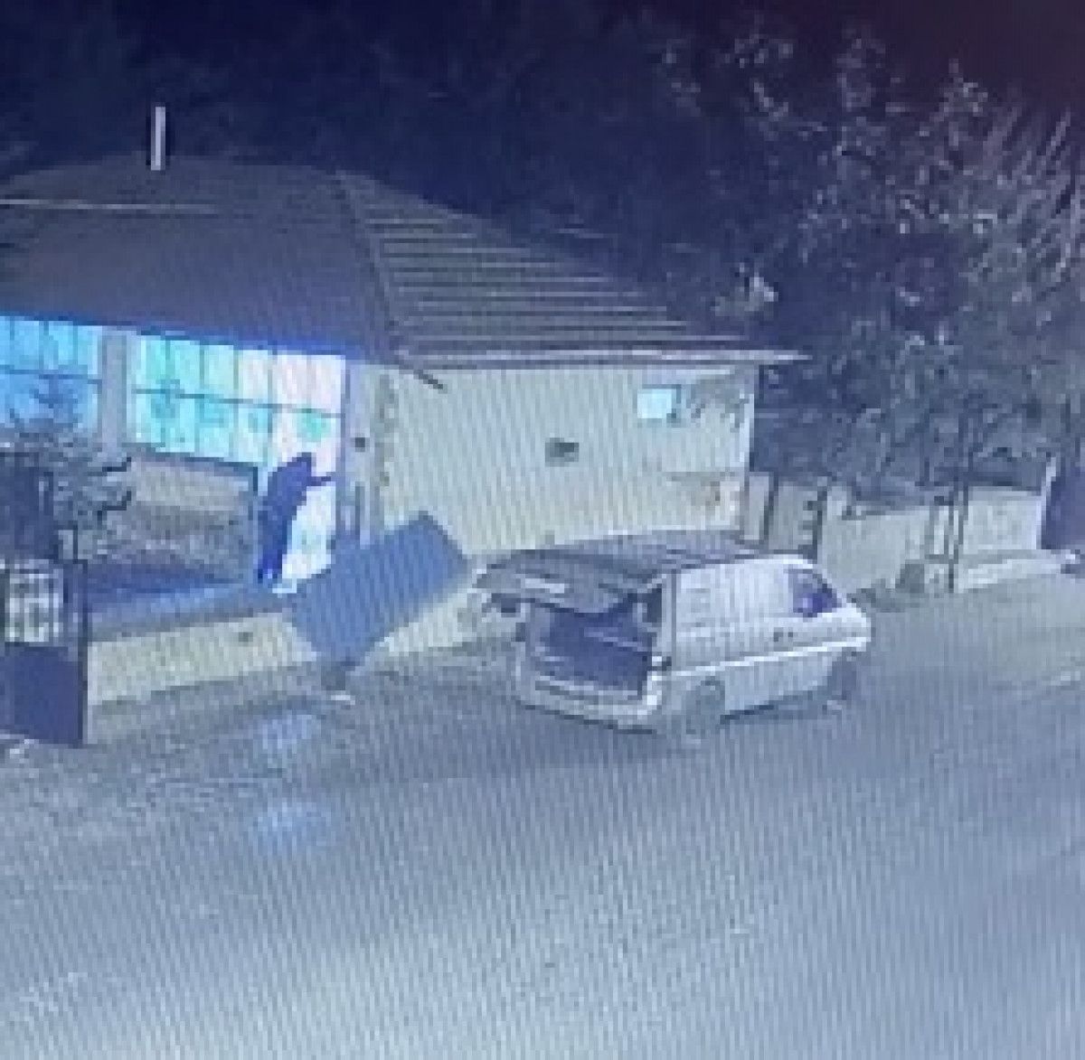 Görüntülerde, şüphelilerin demir kapıları minibüsün bagajına yükleyip olay yerinden ayrıldıkları görüldü.