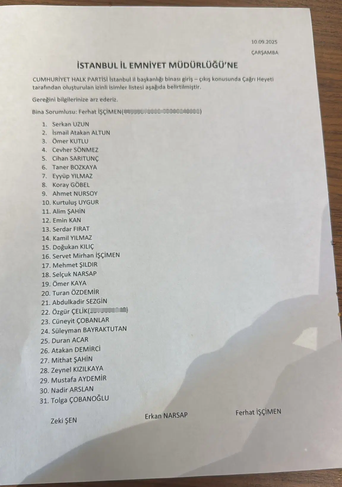 Buna göre CHP İstanbul İl Başkanı Özgür Çelik’le birlikte izin verilen diğer isimler şöyle: