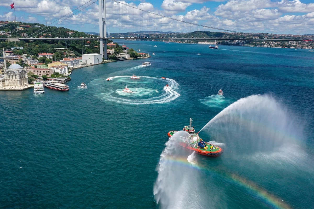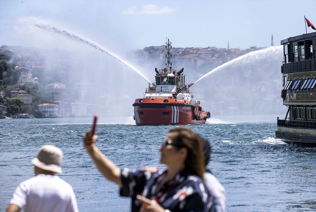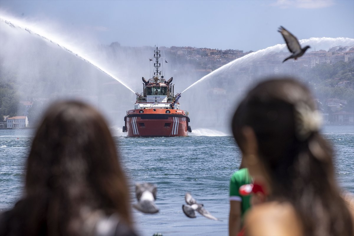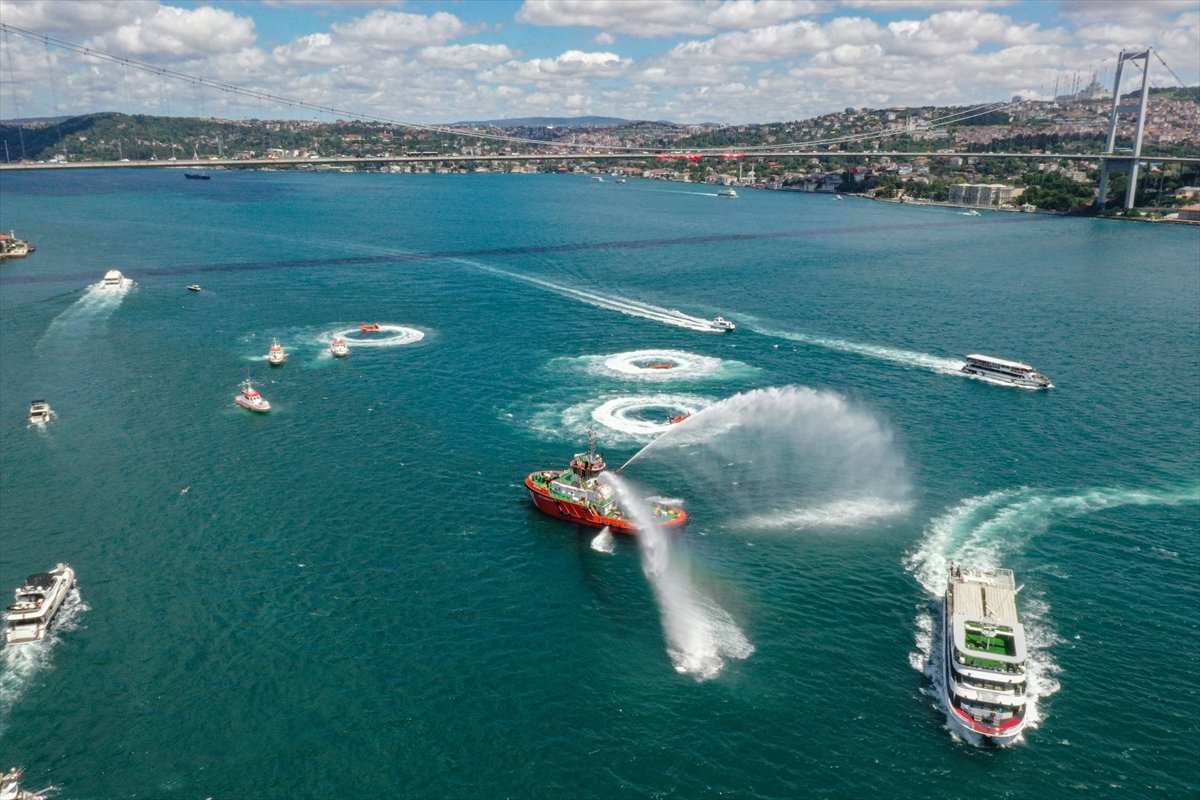 AA’nın haberine göre Beylerbeyi açıklarında başlayan saygı seyrine katılan deniz araçları, Anadolu Yakası sahil şeridinden Fatih Sultan Mehmet Köprüsü’ne kadar ilerledi.