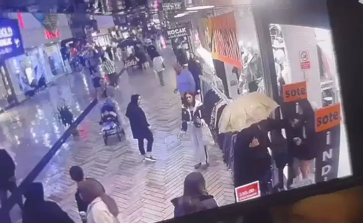 V.D.’nin polis merkezindeki işlemleri devam ederken, yaşananlar, bir mağazanın güvenlik kamerasına yansıdı.
