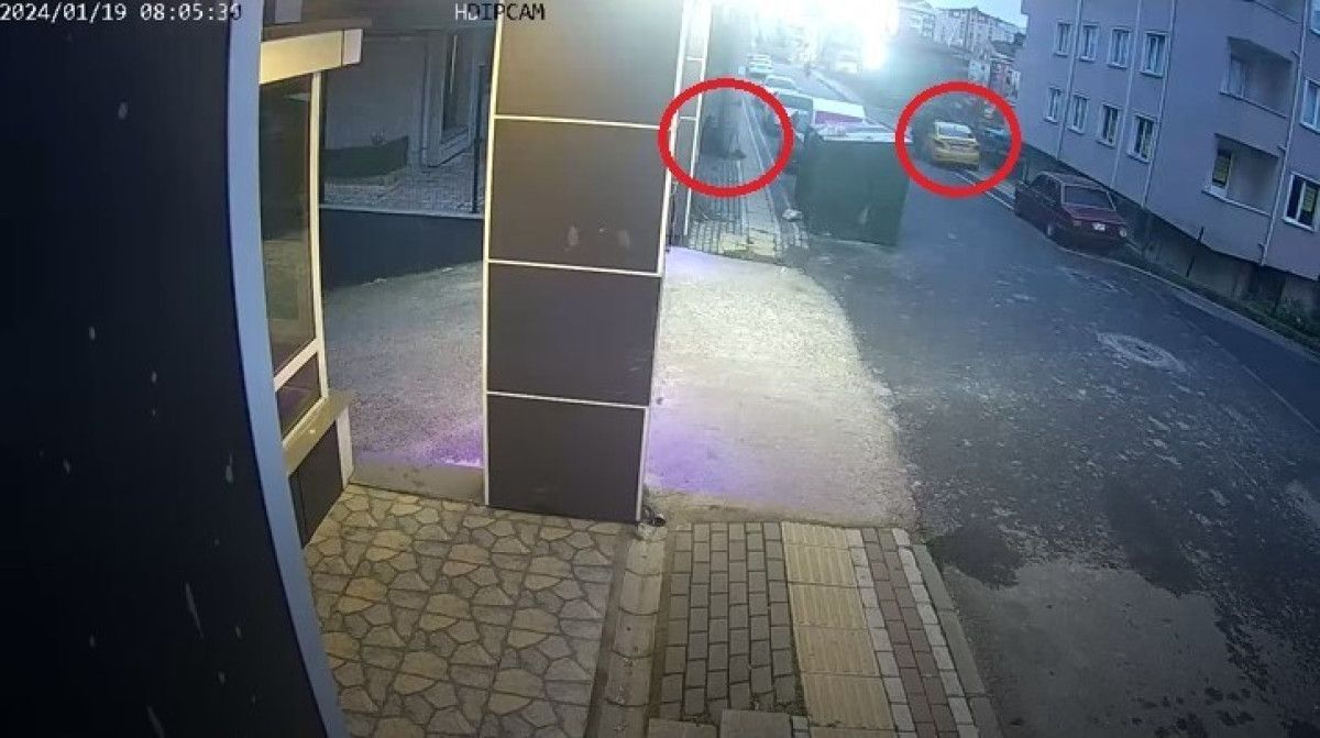 Bir süre sonra Temek’in araçtan kaçarak sitenin önüne geldiği, şüphelilerin ise bir süre bekledikten sonra taksi ile gittiği anlar da güvenlik kamerasına yansıdı.