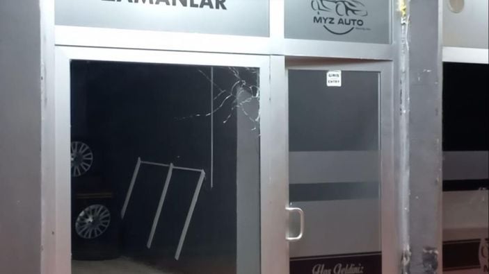 Kurşunların hedefi olan dükkanın camı kırılırken olayı gerçekleştiren kişi veya kişiler kaçtı.
