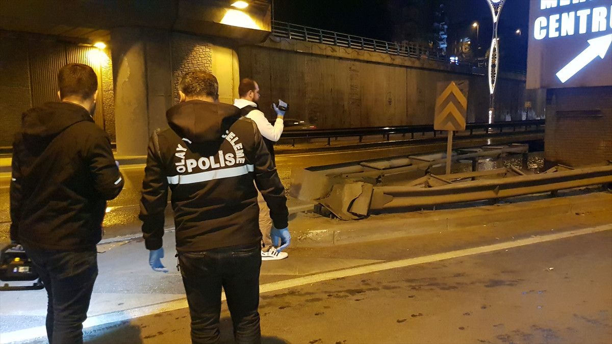 Çarpmanın etkisiyle sürücü refüje savruldu.