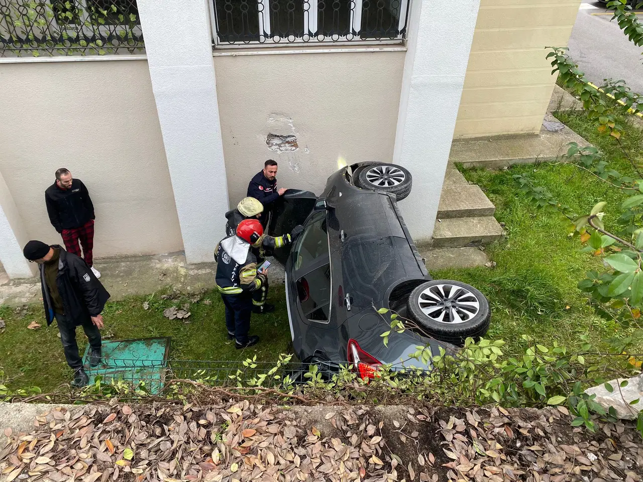 Edinilen bilgiye göre; sürücüsünün ismi öğrenilemeyen 41 GP 704 plakalı otomobil, yaklaşık 4 metre yükseklikteki istinat duvarından apartmanın bahçesine uçtu.