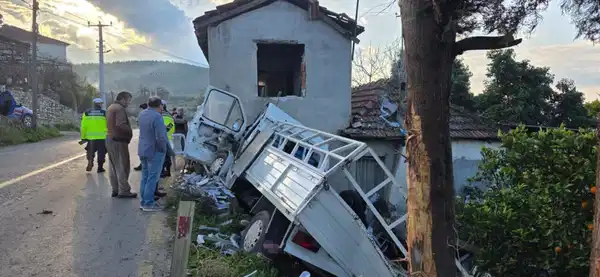 Kontrolden çıkan araç önce yol kenarındaki ağaçlara, ardından bir eve çarparak durabildi. Kazada hurdaya dönen kamyonette sürücü Arda Ö. sıkıştı.