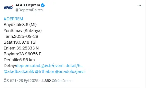 Kütahya’nın Simav ilçesinde 5.4 büyüklüğünde deprem meydana gelmiş ve deprem İstanbul ve İzmir’de de hissedilmişti.