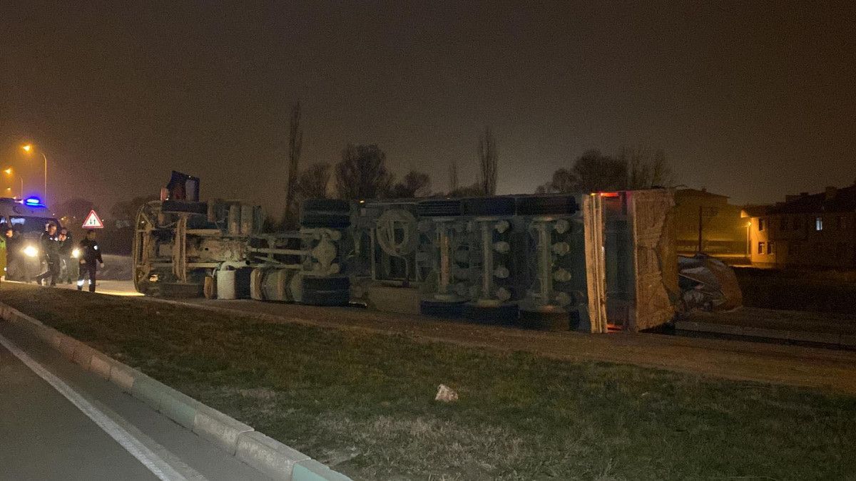 Kütahya-Tavşanlı kara yolunda Nusret Yamık’ın kullandığı 34 ER 3936 plakalı tır, kontrolden çıkarak devrildi.