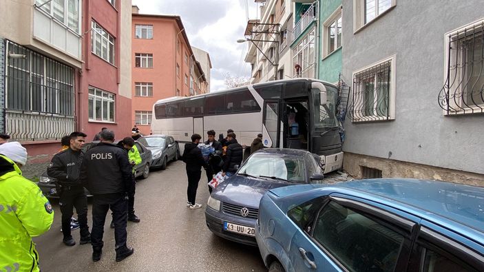 Kütahya’da Lala Hüseyin Paşa Mahallesi Gönye Sokak’ta yokuş aşağı inen Bülent Günday yönetimindeki 03 AEK 557 plakalı otobüs, freninin boşalması sonucu kontrolden çıkıp park halindeki 6 araca çarptıktan sonra yol kenarındaki apartmanın duvarına çarparak durabildi.