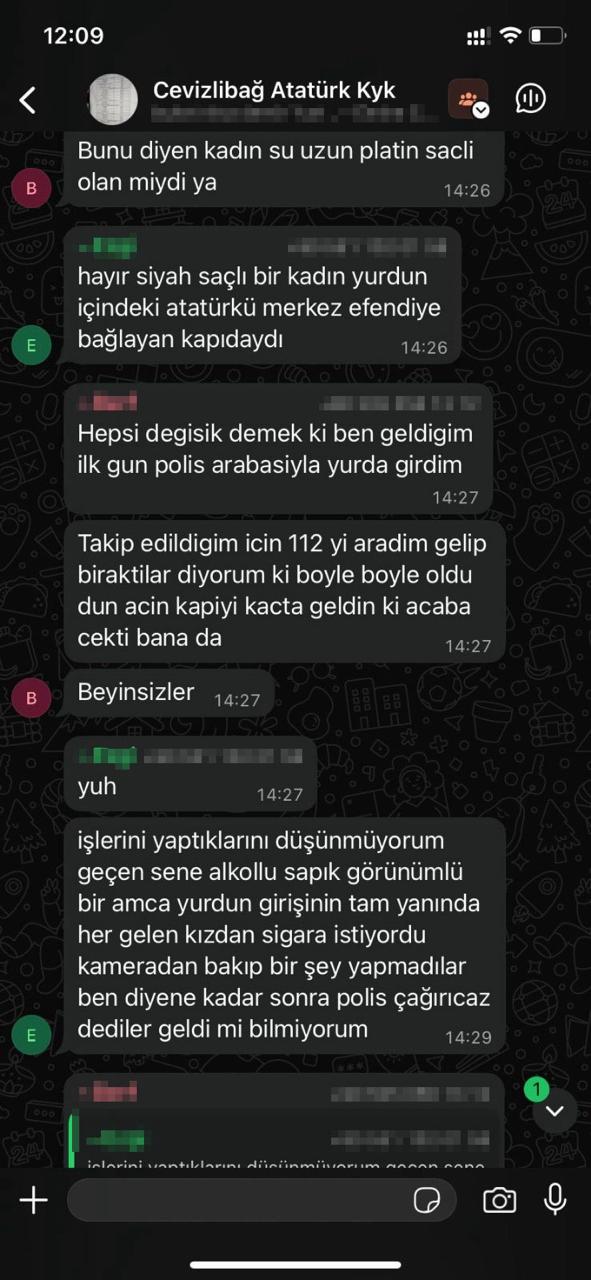 Tadilat için yurda gelen işçilerin kendilerini güvende hissetmemelerine yol açtığını belirten, ismini vermek istemeyen bir yurt öğrencisi, “İşçiler odalara izinsiz giriyor. Binanın içerisinde, yanlarında güvenlik olmaksızın dolanıyorlar. Güvenlik görevlisi zaten odanın içerisinde yapılacak bir tadilat varsa kapıyı çalar, ‘Müsait misin?’ der. Ben müsaitim dedikten sonra geri çıkar ve adamı içeriye alır. Odalarımızın kapısının kilidi yok. Kilitten bakıldığı zaman odanın içerisi komple gözüküyor. Duşa girmekten, üstümüzü değiştirmekten çekiniyoruz. Kendimizi güvende hissetmiyoruz” diye konuştu.
