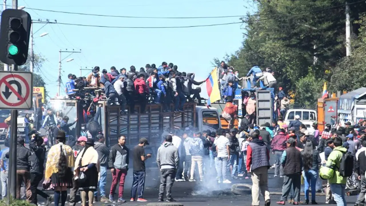 Başkent Quito’nun kuzeyindeki San Miguel del Común bölgesinde yüzlerce kişi, Ekvador Yerli Halkları Konfederasyonu CONAIE öncülüğündeki genel greve destek için sokağa çıktı.