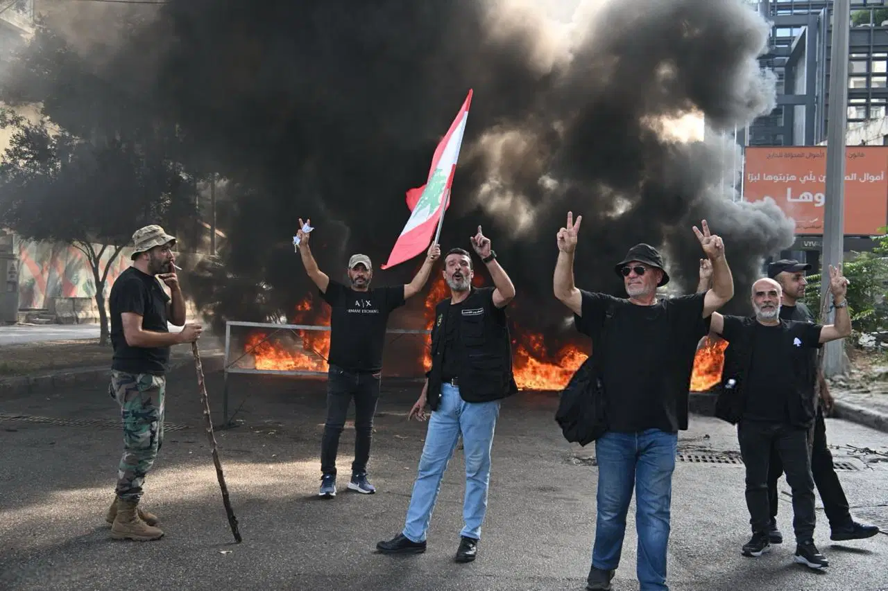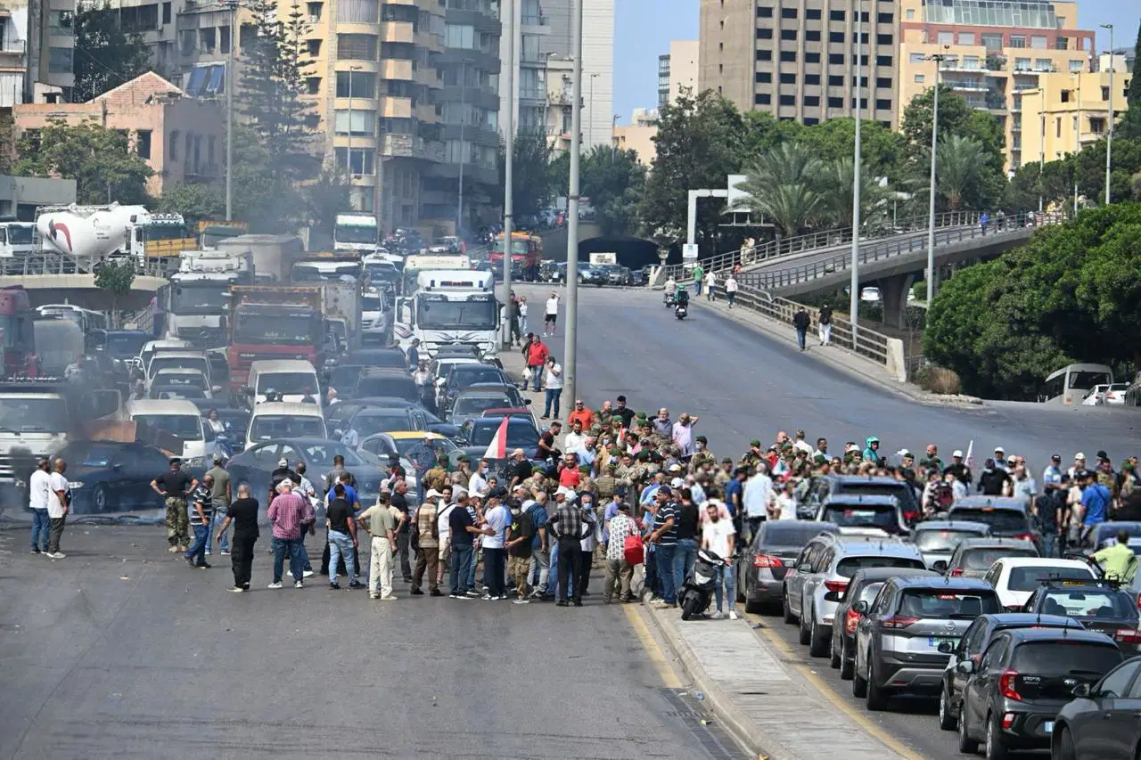 Lübnan Silahlı Kuvvetleri Gaziler Derneği’nin çağrısıyla toplanan göstericiler, Sayfi bölgesinde lastikleri yakarak yolları trafiğe kapattı.