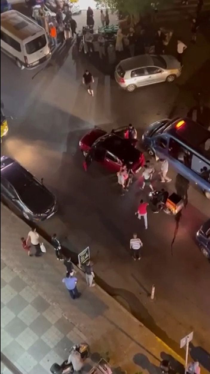 O esnada kavgayı görerek tarafları ayırmak isteyen bir vatandaş ikilinin arasına girdi.