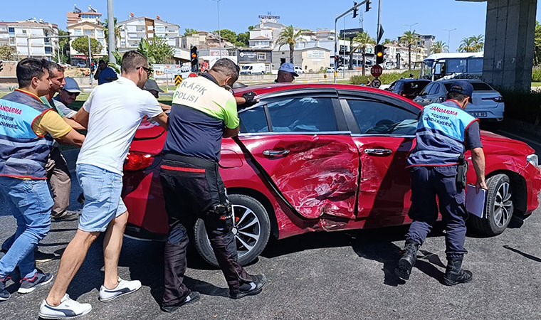Manavgat’ta yan yolda çarpışan 2 araba, o sırada kırmızı ışıkta bekleyen öteki bir araca çarptı. Kazada 3 kişi yaralandı.