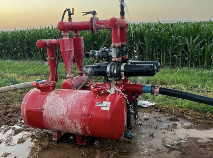 Mardin’in Artuklu ilçesindeki kırsal Kuyulu Mahallesi’nde mısır üreticisinin ilaçlama deposundan sızan su, birikinti haline geldi.