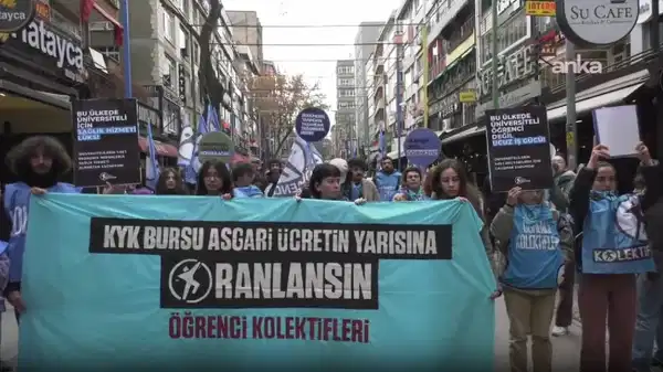 Farklı illerden Ankara’ya gelen Öğrenci Kolektifleri üyesi öğrenciler, KYK burslarının asgari ücretin yarısına eşitlenmesi talebiyle Konur Sokak’ta toplandı.