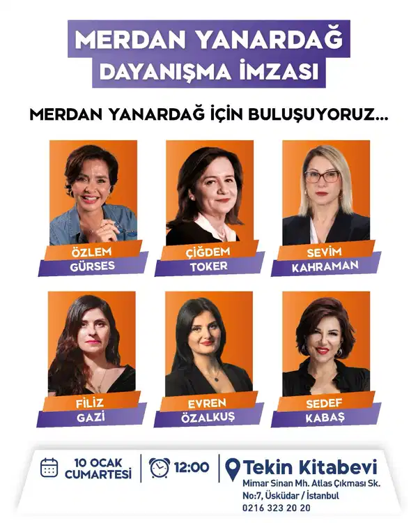 Gazeteciler Özlem Gürses, Çiğdem Toker, Filiz Gazi, Evren Özalkuş, Sedef Kabaş ile Merdan Yanardağ’ın eşi, yazar Sevim Kahraman Yanardağ, 10 Ocak’ta saat 12.00’de Tekin Kitabevi’nde okurlarla buluşacak. Medyanın önde gelen isimleri, etkinlikte tutuklu gazeteci ve yazar Merdan Yanardağ’ın kitaplarını imzalayacak.