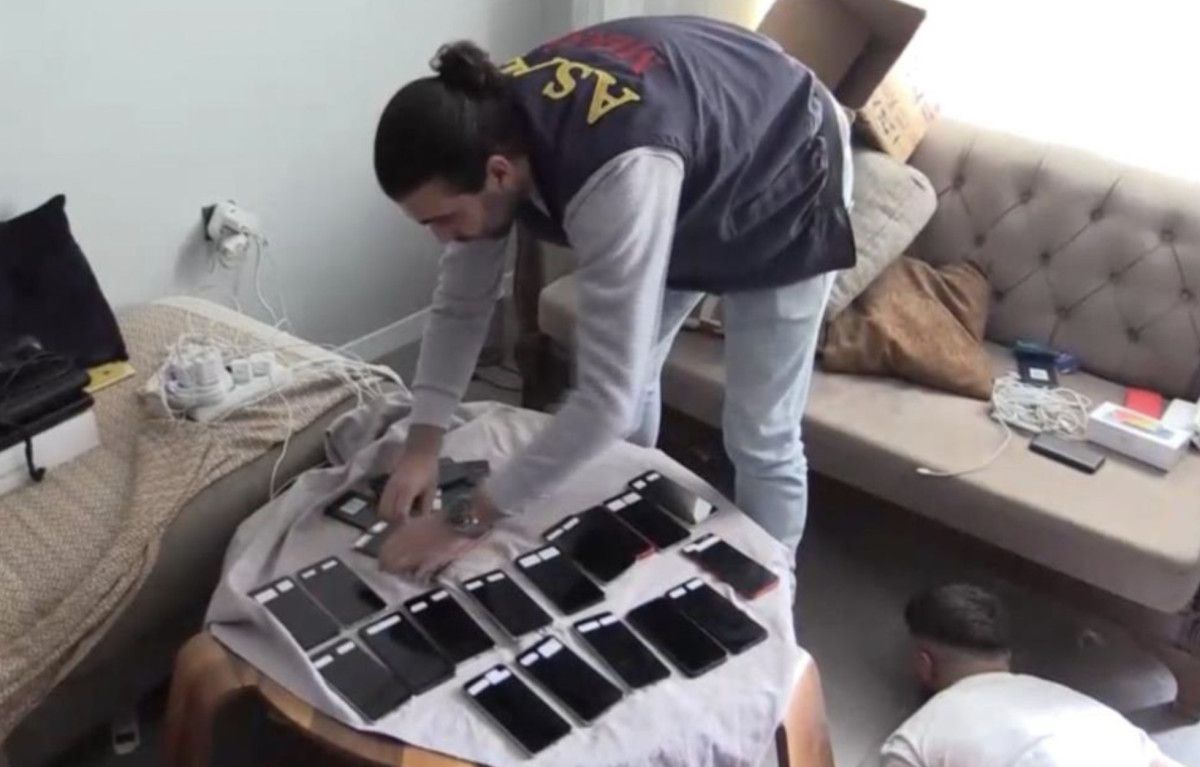 Havuzlu lüks bir sitedeki dairelerde yapılan aramada 37 adet cep telefonu, 6 adet laptop, 20 adet banka kartı, bir miktar para, esrar ve uyuşturucu hap ele geçirildi.