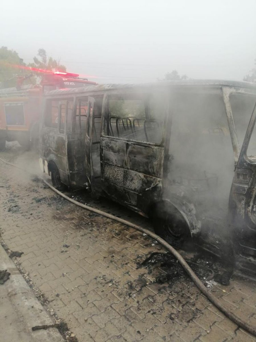 Mersin’in Tarsus ilçesinde F.E.nin kullandığı dolmuş tipi servis aracı Takbaş Mahallesi Kartal Tepesi bölgesinde motor kısmından henüz bilinmeyen bir nedenle yanmaya başladı.