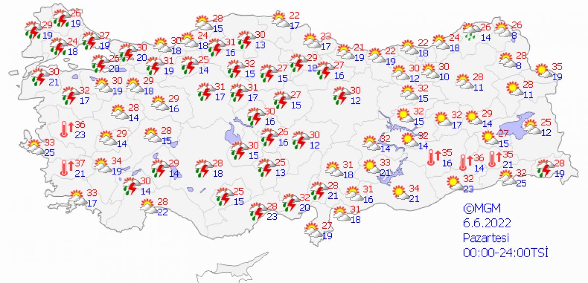 6 Haziran raporunu yayınlayan Meteoroloji Genel Müdürlüğü, yurt geneli için yağmur, toz taşınımı ve sel baskınları uyarısında bulundu.