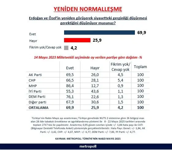 MetroPOLL Araştırma, Mayıs 2025 tarihinde 2 bin 717 katılımcı ile bir anket gerçekleştirdi.