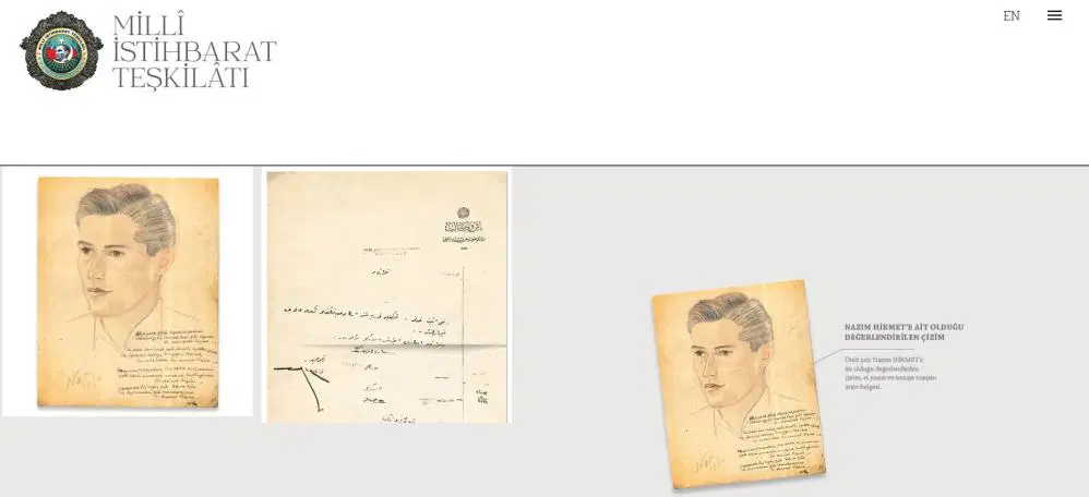 MİT, ünlü şair Nazım Hikmet’e âit olduğu değerlendirilen çizim, el yazısı ve imzayı taşıyan arşiv belgesi olarak yayımladı.