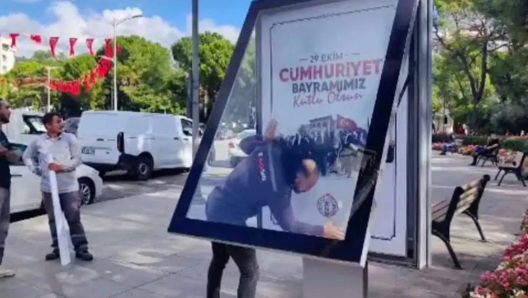 Afişlerde, “29 Ekim Cuhmuriyet Bayramımız kutlu olsun” ifadeleri yer aldı.