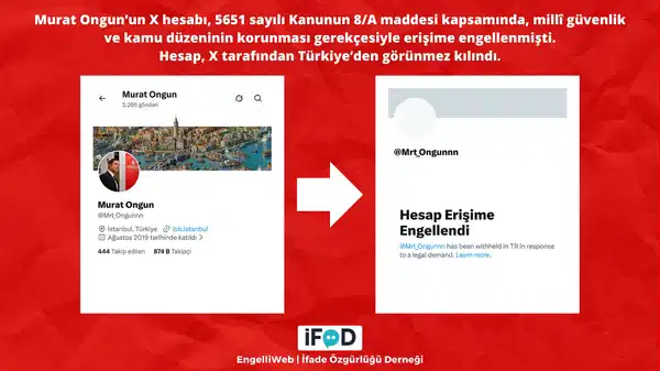 İBB soruşturması kapsamında tutuklu bulunan eski Medya A.Ş. Yönetim Kurulu Başkanı Murat Ongun’un X hesabına, 2 Ocak tarihinde, erişim engeli getirildi.