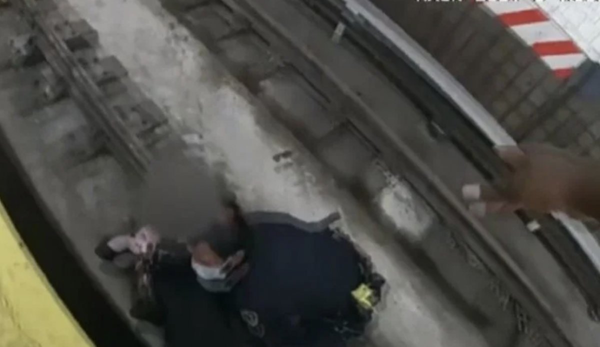 Kadın, raylardan saniyeler içinde çıkarılırken, o sırada istasyona yaklaşan bir metro olmamasıyla facianın eşiğinden dönüldü.