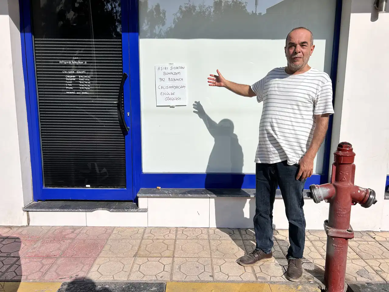 Esnafın iş yerinin camına astığı notta, “Aşırı sıcaktan bunaldım, yaz boyunca çalışmayacağım. Eylülde görüşürüz” ifadeleri yer aldı. Esnafın kararı ve notu ilgi odağı olurken tebessüm ettirdi.