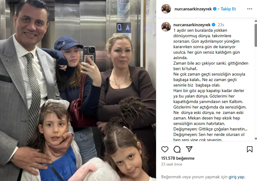 Zeyrek’in eşi Nurcan Sarkın Zeyrek, sosyal medya hesabından eşi Ferdi Zeyrek hakkında şu paylaşımı yaptı: