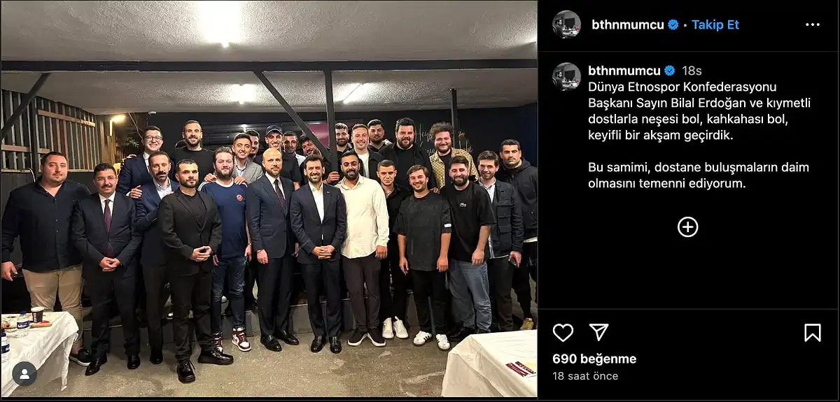 AKP’li Cumhurbaşkanı Recep Tayyip Erdoğan’ın oğlu, Dünya Etnospor Birliği Başkanı ve Okçuluk Vakfı Mütevelli Heyeti Üyesi Bilal Erdoğan fenomenlerle ve ünlü isimlerle bir araya geldi.
