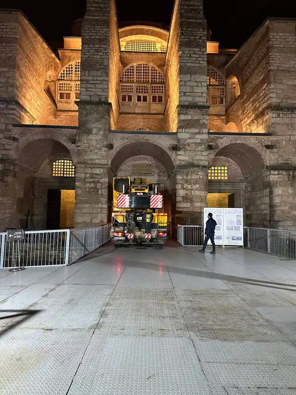Ayasofya Camii’nde başlatılan restorasyon çalışmaları sırasında, tarihi binanın içine yüksek tonajlı vinçler sokulduğu anların görüntüsü sosyal medyada gündem oldu. Neredeyse 1.500 yıllık geçmişe sahip olan Ayasofya, daha güvenli ve düzenli bir yapıya kavuşması amacıyla kapsamlı restorasyon sürecine girmişti.