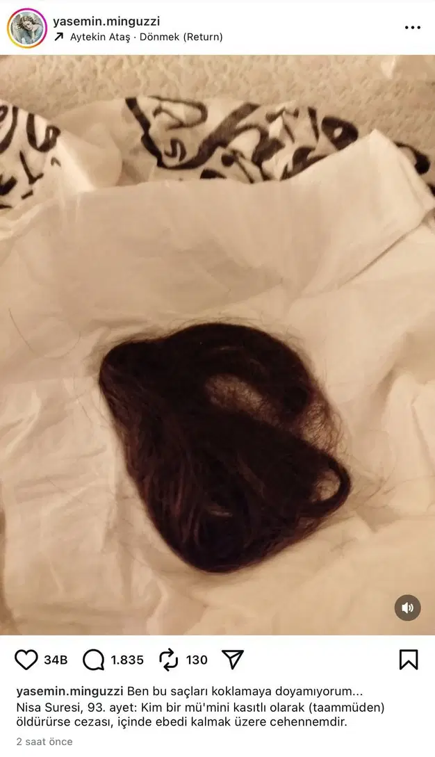 Bu gelişmelerin ardından Minguzzi’nin annesi Yasemin Minguzzi’den yürek yakan bir paylaşım geldi. Anne Minguzzi, oğlunun sakladığı saçlarının fotoğrafını paylaştı.
