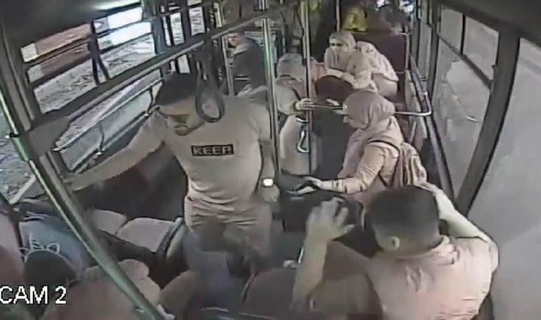 O anlar özel halk otobüsünün güvenlik kameralarına yansıdı.