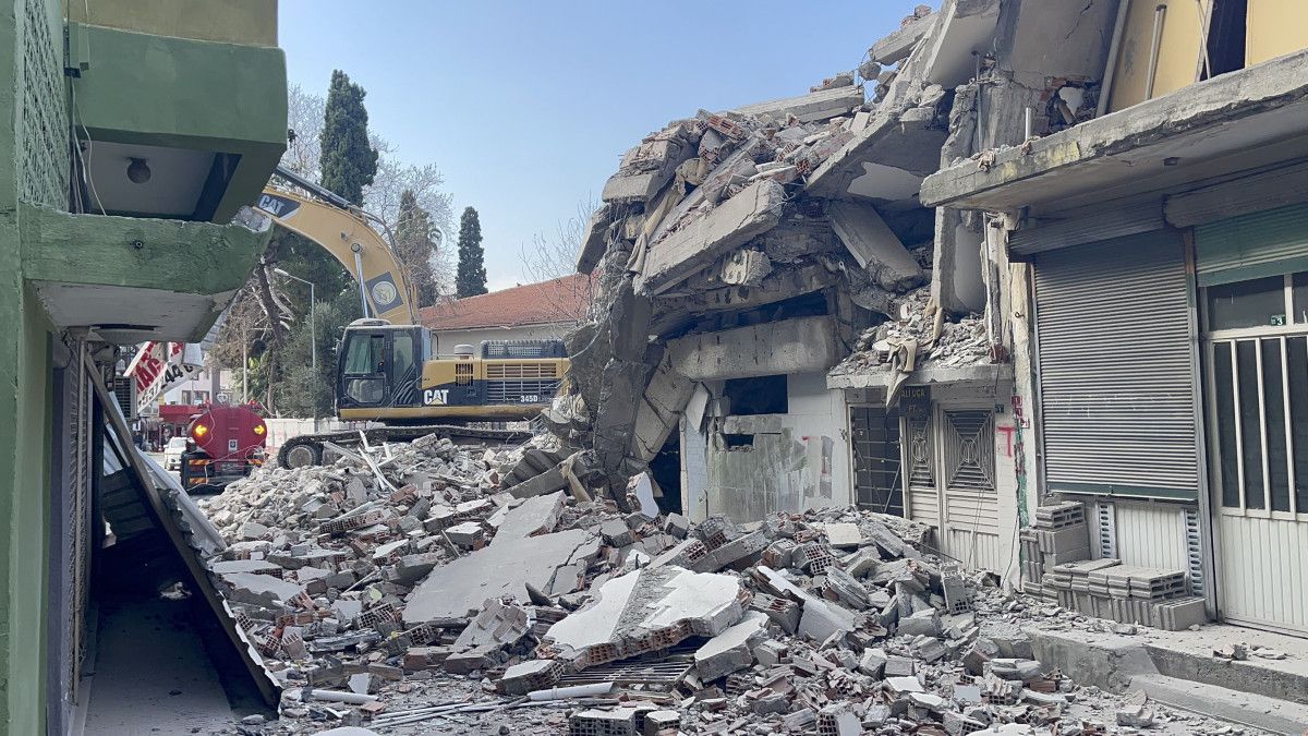 Sarsıntılar sonrası hasar alan binaların kontrollü yıkımı gerçekleştiriliyor.