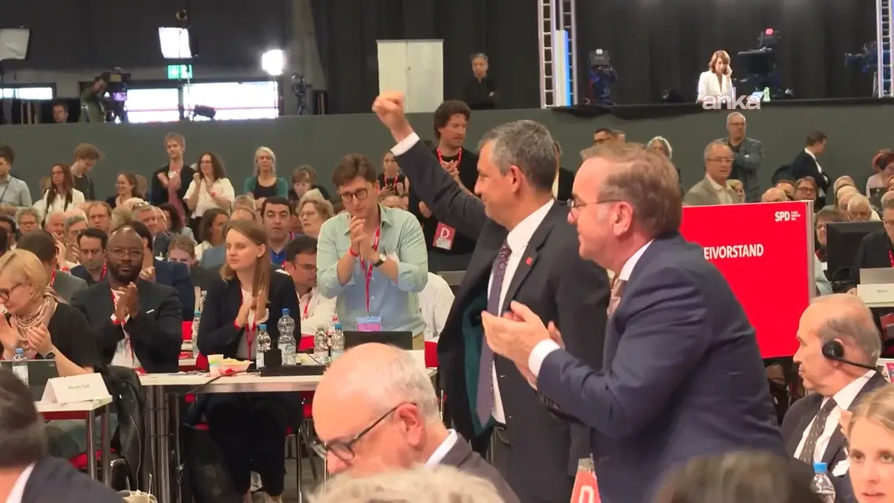 Cumhuriyet Halk Partisi (CHP) Genel Başkanı Özgür Özel, Almanya’nın başkenti Berlin’de düzenlenen Almanya Sosyal Demokrat Partisi’nin (SPD) Kongresi’nde salonu selamladığı esnada katılımcılar tarafından ayakta alkışlandı.