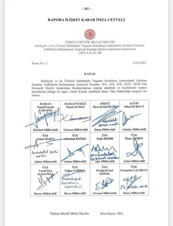 Buna karşın, Meclis’te bundan üç ay önce balıkçılık sektöründeki sorunları araştırmak için kurulan komisyonun raporunda benzer bir tespite yer verildiği ortaya çıktı.