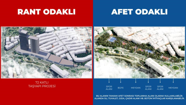 Şahan “Hakikat bu kadar net. Cevap tek. Evet-Hayır. Madem sosyal konut üretme derdiniz var, bu alana yürümek 20 dakika sürmez. Kuştepe’ye borcumuzu, oradaki ve yoksul tüm mahallelerdeki vatandaşımıza borcumuzu ödeyelim. Bu alandaki Deprem Yasası ile yaratacağınız değerle bunu yapalım.” dedi.