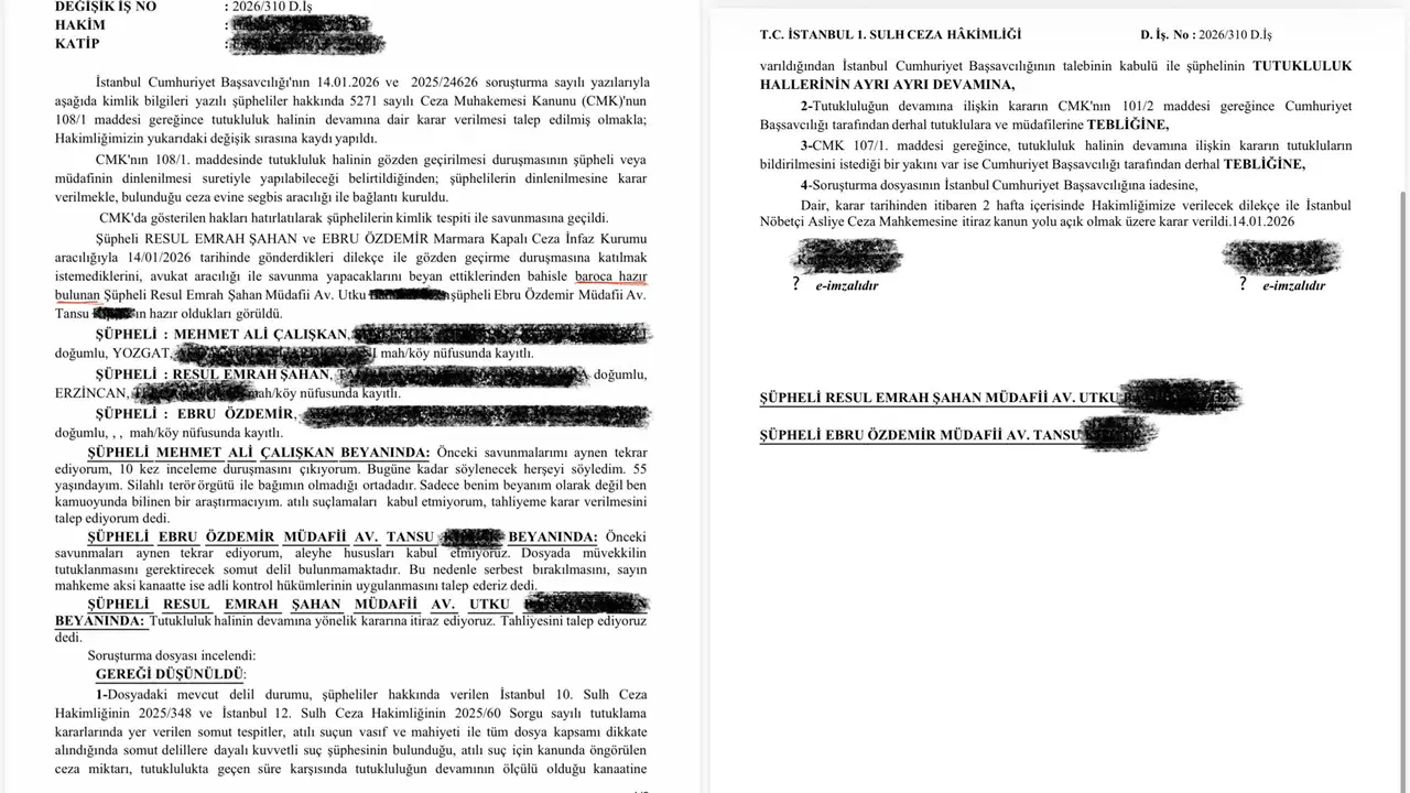 Ersöz, daha çarpıcı bir duruma ise tutukluluğun devamına ilişkin kararlarda dikkat çekti. Buna göre, Resul Emrah Şahan’ın “Utku” isimli bir avukatı bulunmamasına rağmen, kararlarda bu isimle bir müdafiin beyanına yer verildi. Benzer şekilde, Şişli Belediye Başkan Yardımcısı Ebru Özdemir’in de “Tansu” isimli bir müdafii olmadığı, ancak tutanaklarda bu ismin yer aldığı belirtildi.