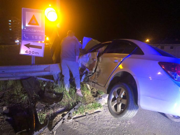 Hız kaybetmeyen araç sonrasında da bariyere saplandı.