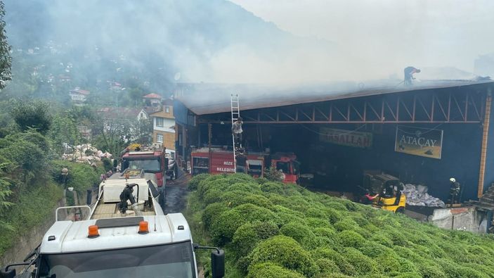 Rize’nin Güneysu ilçesi Kiremit köyünde bir özel çay fabrikasının bacasında yangın çıktı.