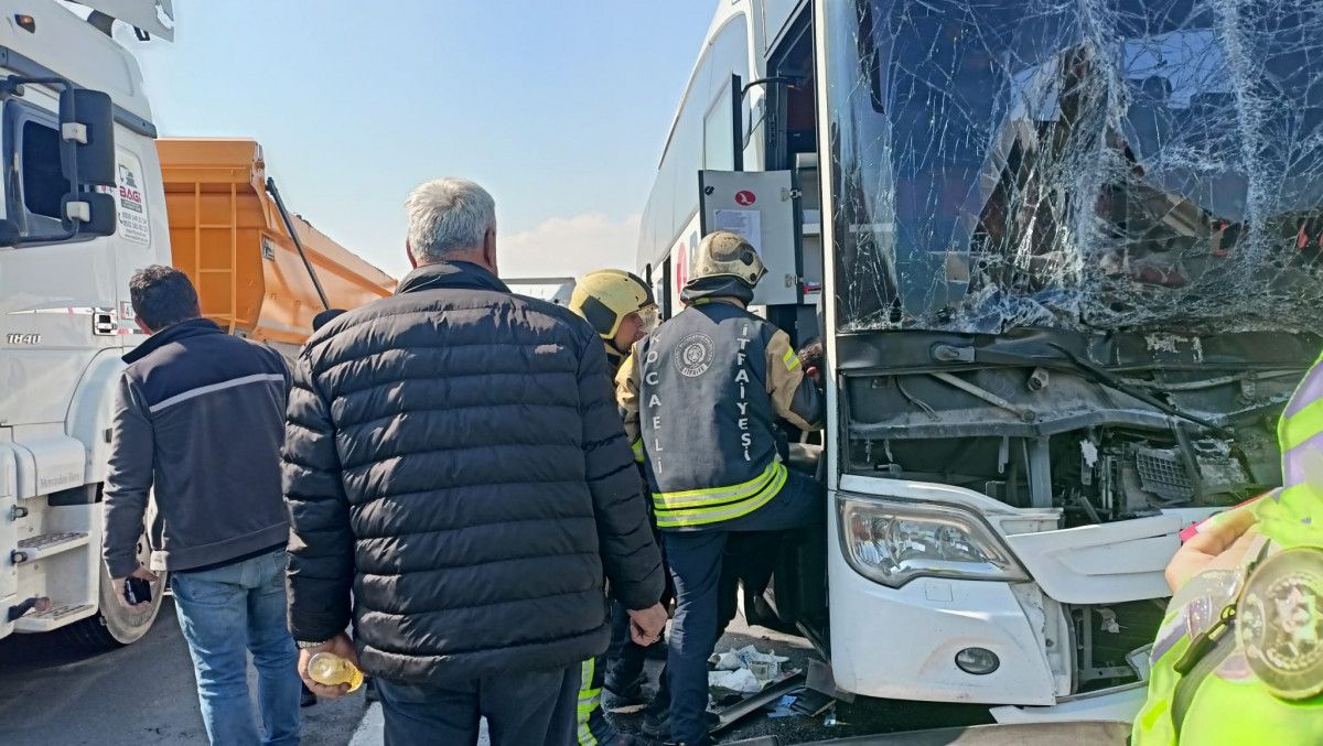 Kocaeli’nin Dilovası ilçesi geçişinde yolcu otobüsü, tır ve hafif ticari araç kazaya karıştı.