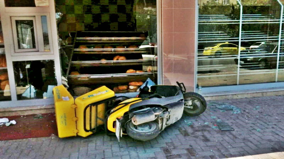 S.B.T.A.’nın kontrolünü kaybettiği motosiklet, yol kenarındaki ekmek fırınının vitrinine çarptı.