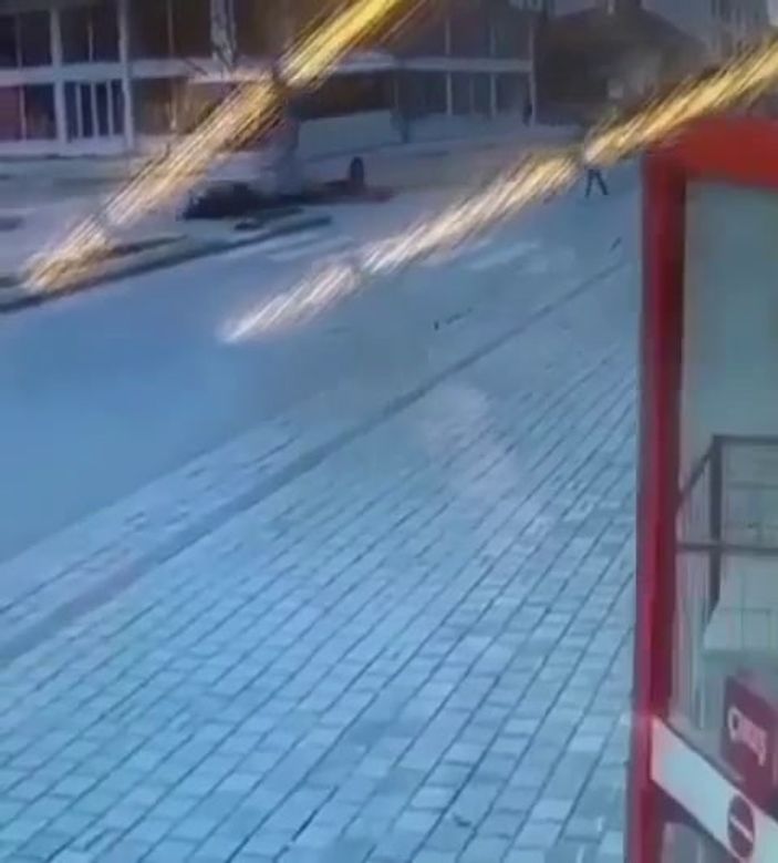 Görüntülerde, motosikletli Eyüp Uzunoğlu’nun karşı yöne geçmeye çalıştığı esnada servis otobüsü ile çarpışması, metrelerce sürüklenmesi ve kazayı görenlerin koşuşturması yer aldı.
