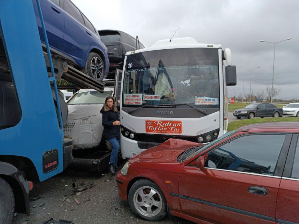 Ordu- karayolu Tekkeköy ilçesi Costal Kavşağı’nda, A.D.’nin kullandığı sıfır araç yüklü tır, orta şeritten sol şeride girdi.