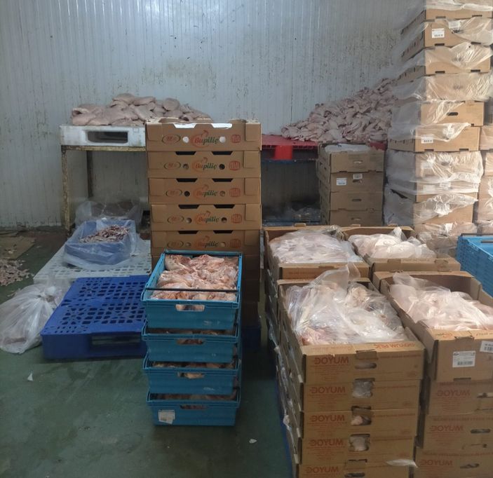 Bu çerçevede takımlarca depolara yönelik denetimlerde, piyasaya sürülmek üzere son kullanma tarihi geçmiş 4 ton 375 kilogram tavuk eti ile sakatat bulundu.